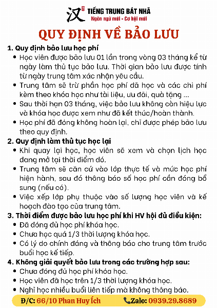 QUY ĐỊNH BẢO LƯU HỌC PHÍ